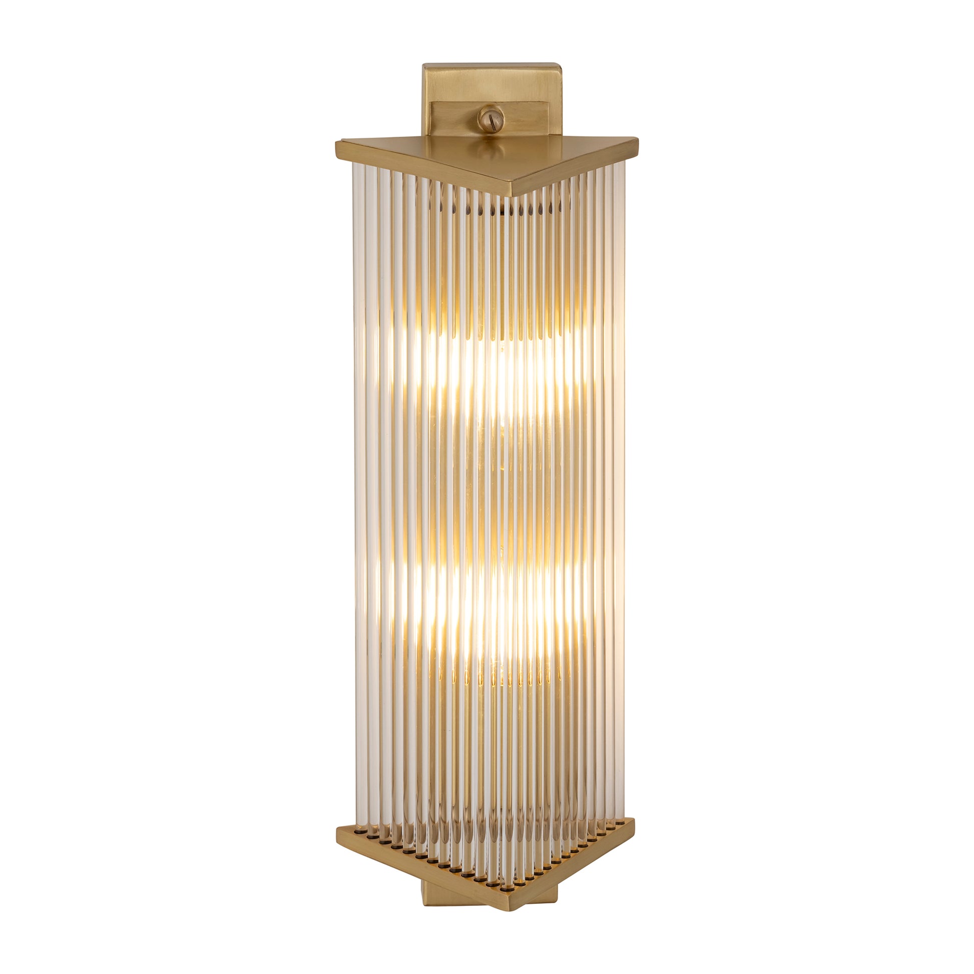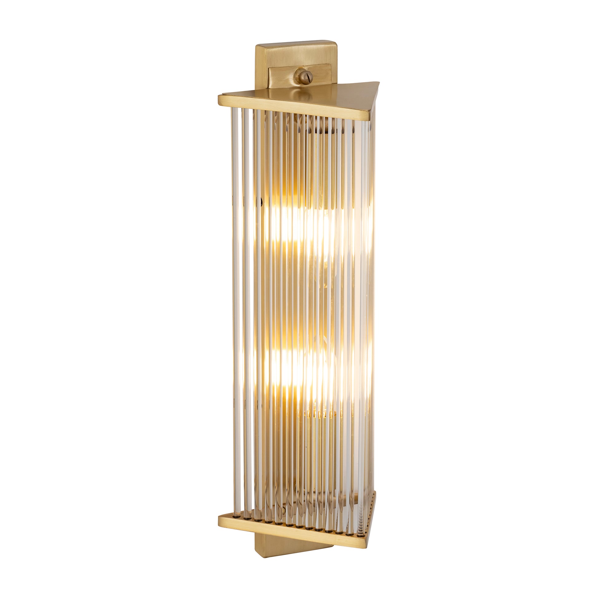 The sceptre is a sophisticated brass glass and metal wall light designed to give class to your living space. This wall light's long and linear design is perfect for those spaces that want light but also some story around it. Solid brass glass contrasts with gold metal frame giving out a stunning visual effect.